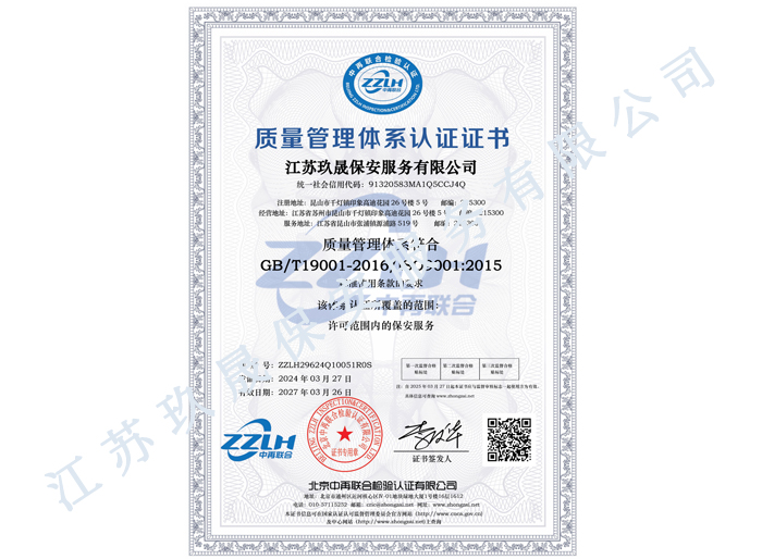 江蘇玖晟保安服務有限公司成立于江蘇省昆山市千燈鎮(zhèn)。注冊資金:5000萬,是擁有省公安廳頒發(fā)的保安服務許可證的企業(yè)【蘇公保服20170046】,也是昆山市保安協(xié)會常務理事單位。